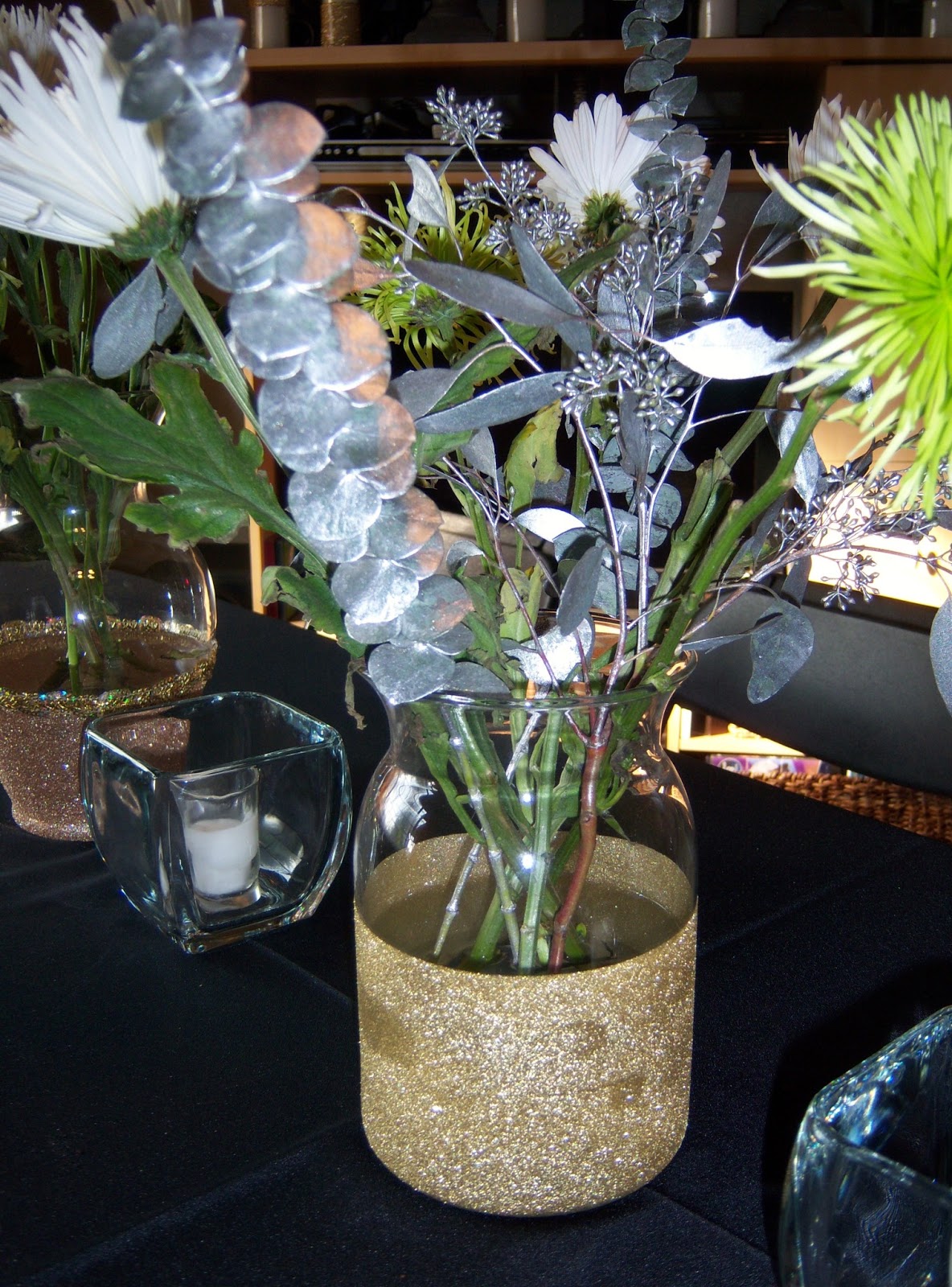 The next day, spray with a gloss sealer & let dry again, this will keep the glitter in place so you can lightly hold the vase & also because everyone will want to touch them.